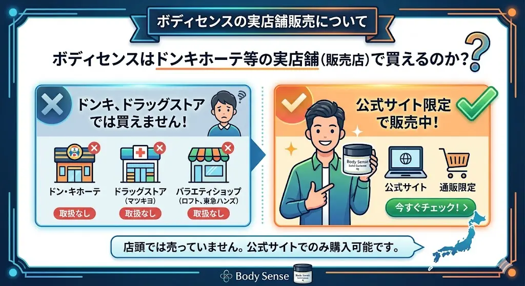 ボディセンスはドンキホーテ等の実店舗(販売店)で買えるのか?