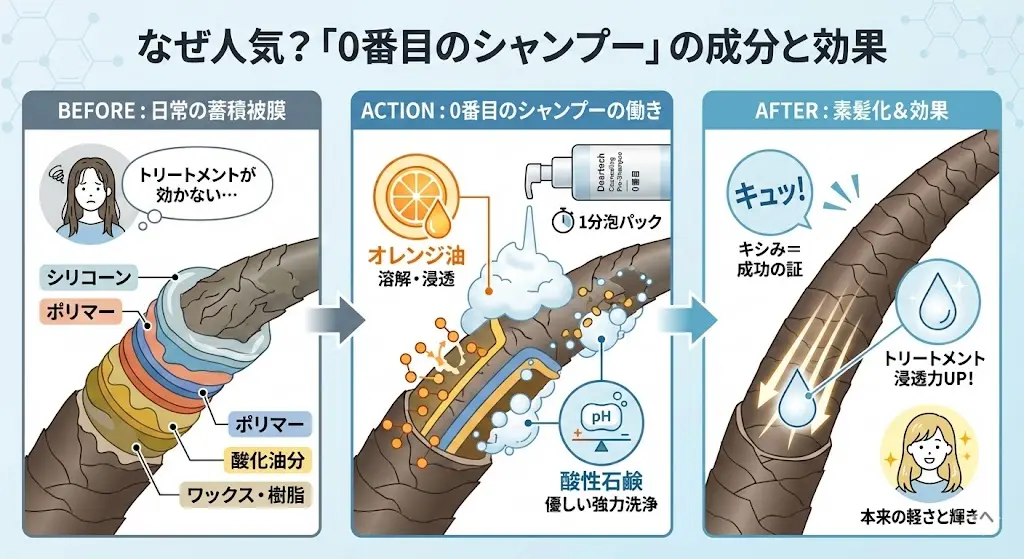 通常のシャンプーを「1番目のシャンプー」とするなら、これはその前に行う「0番目のシャンプー」。そのメカニズムを、成分解析の視点から紐解きます。