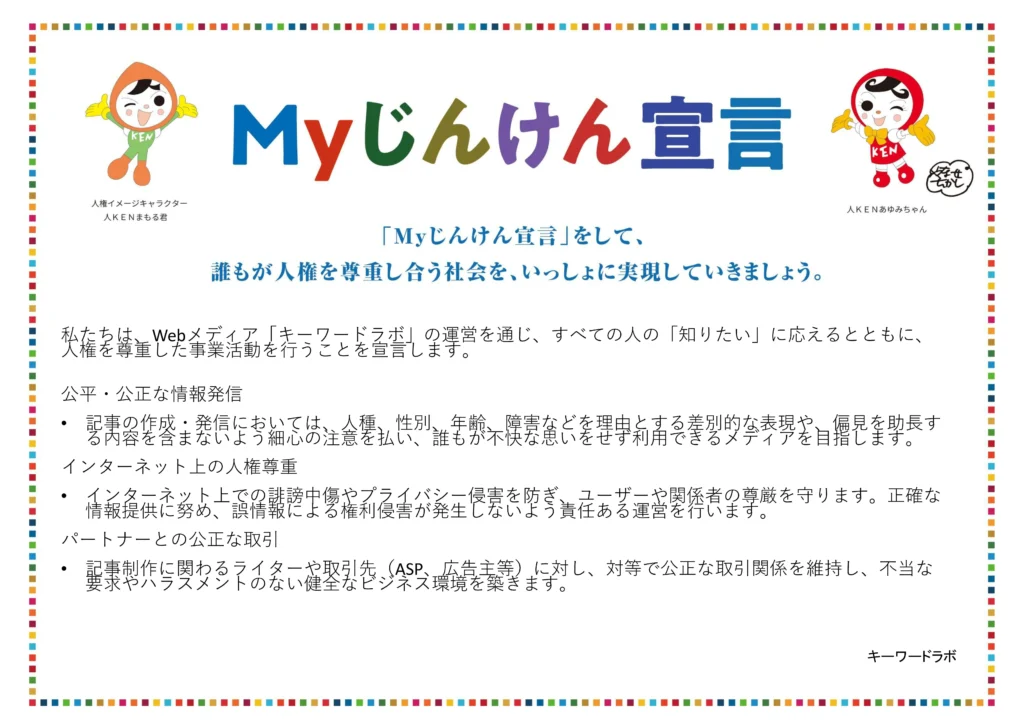 私たちは、Webメディア「キーワードラボ」の運営を通じ、すべての人の「知りたい」に応えるとともに、人権を尊重した事業活動を行うことを宣言します。