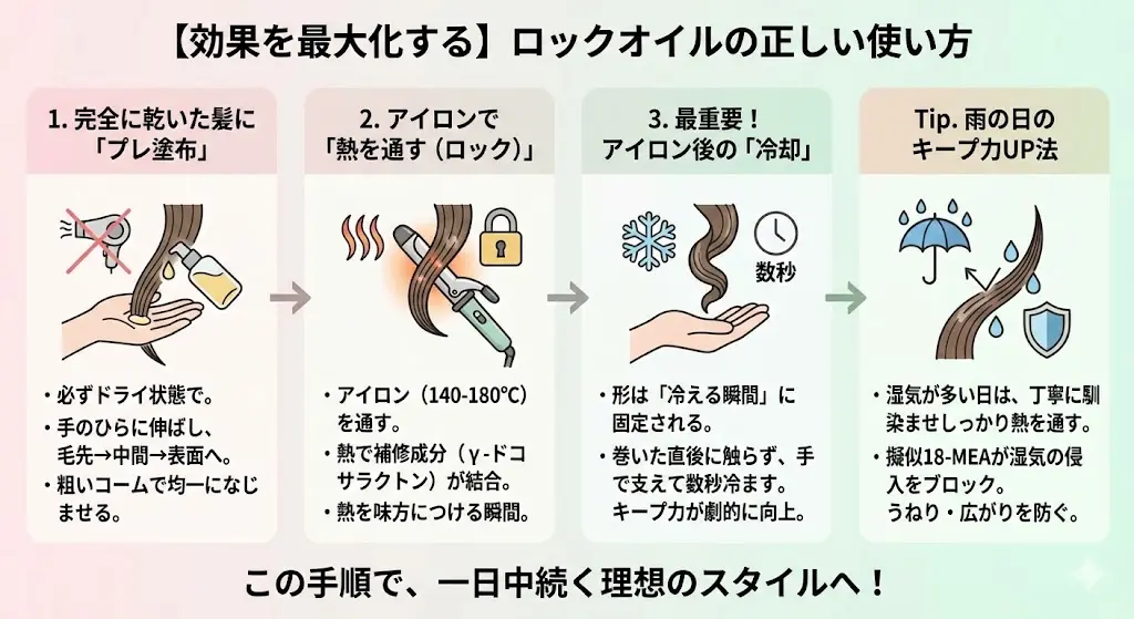 最後に、リノン ロックオイルのポテンシャルを120%引き出す、プロ推奨の使い方をご紹介します。